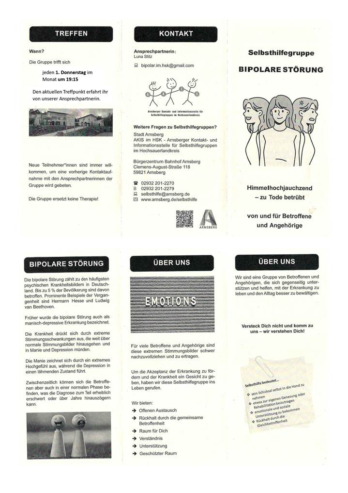 Bipolare Störung (Manisch Depressiv) – Hier gibt es eine Selbsthilfegruppe im HSK für die Städte Brilon, Olsberg, Arnsberg, Sundern, Marsberg, Medebach, Hallenberg, Winterberg, Schmallenberg, Eslohe, Meschede und Bestwig